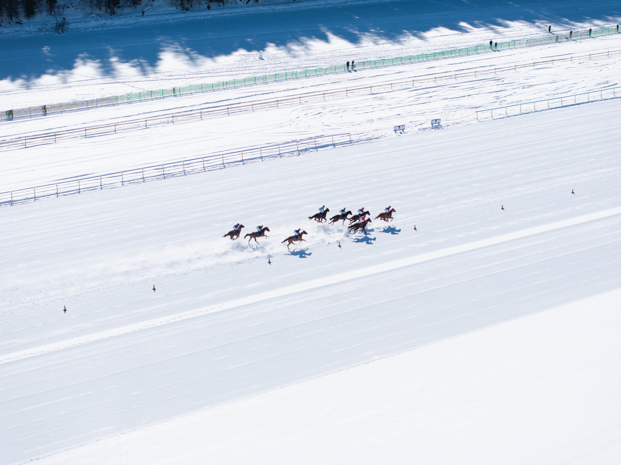 «Die Bedingungen auf dem St. Moritzersee sind hervorragend. Die Eisdecke ist an den entscheidenden Stellen über 50 Zentimeter dick, die Eisqualität so gut wie seit Jahren nicht mehr. Zusätzlich haben wir maschinell Schnee produziert, um den Athletinnen und Athleten eine bestmögliche Unterlage bieten zu können», sagt Dennis Schiergen, Head of Racing beim White Turf St. Moritz.