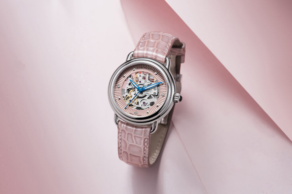 Für die kommende Saison, die mit festlichen Anlässen aufwartet, macht die neue Skelett – Damen-Uhr-Kollektion ihre Aufmachung in Edelstahl, in den Trendfarben Altrosa, Weiss, sowie in der Akzentfarbe Framboise. Eleganz und Knowhow tragen die Signatur von Aerowatch und gehen Hand in Hand, um die Aufmerksamkeit der Damen zu gewinnen.