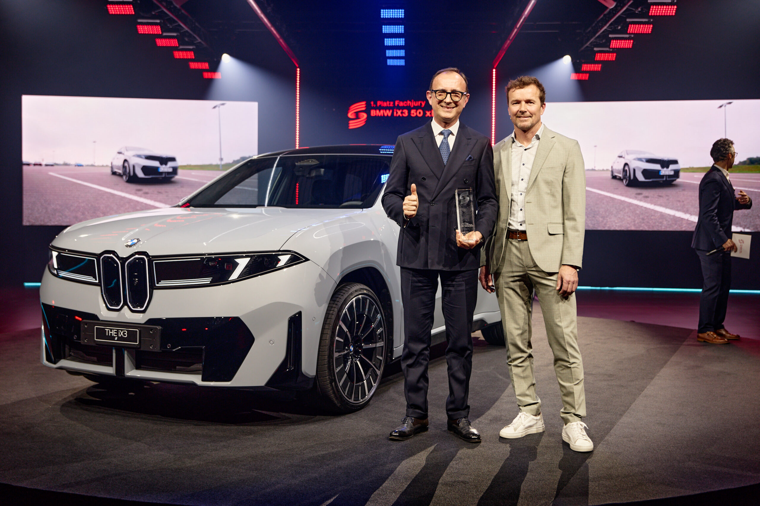 «Der erste Platz durch die Fachjury bestätigt unseren konsequenten Weg in die elektrifizierte Zukunft. Mit dem BMW iX3 und der Neuen Klasse setzen wir Massstäbe in der Elektromobilität und beweisen, dass vollelektrische Mobilität und faszinierendes Fahrerlebnis keine Gegensätze sind. Diese Auszeichnung erfüllt uns mit grossem Stolz und zeigt: Wir gestalten die Elektromobilität in der Schweiz aktiv mit. Für das ausgesprochene Vertrauen bedanken wir uns ausdrücklich bei allen Jurymitgliedern», sagt Sergio Solero, President & CEO der BMW (Schweiz) AG, der den Preis im Emil Frey Classic Center in Safenwil entgegennahm.