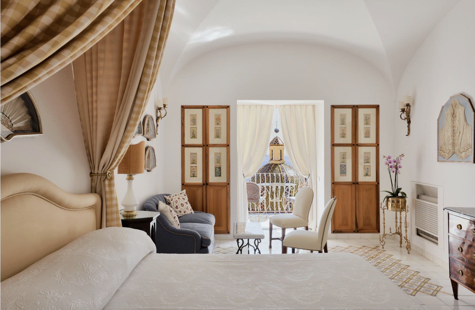 Eine der Leitabsichten hinter seiner Entwicklung ist die Vision von Franco Sersale, der zwischen 1990 und seinem Tod 2015 die Ästhetik und den Geist des Hotels neu gestaltete. Als ausgebildeter Ingenieur, aber im Herzen Reisender und Fotograf strebte Franco danach, die Gäste mit der Schönheit zu umgeben, die er bewunderte. Seine tiefe Verbundenheit mit der Kultur und dem Handwerk Neapels und der Amalfiküste führte dazu, dass er mit lokalen Machern zusammenarbeitete, während seine Neugier ihn zu Auktionen in ganz Europa zog, wo er Kunst und Objekte entdeckte, die allmählich Teil der Identität des Hotels wurden. Francos Ansatz drehte sich nie darum, Modernisierung um ihrer selbst willen zu dienen, sondern darum, durch Kontraste Harmonie zu schaffen. Seine Einladung an den Architekten Gae Aulenti, das minimalistische Spa im Jahr 2000 zu entwerfen, spiegelt diese Sensibilität wider. Das Ergebnis war ein Raum, der zeitlos und zutiefst persönlich wirkte und sein elegantes und vielgereistes Auge widerspiegelte.