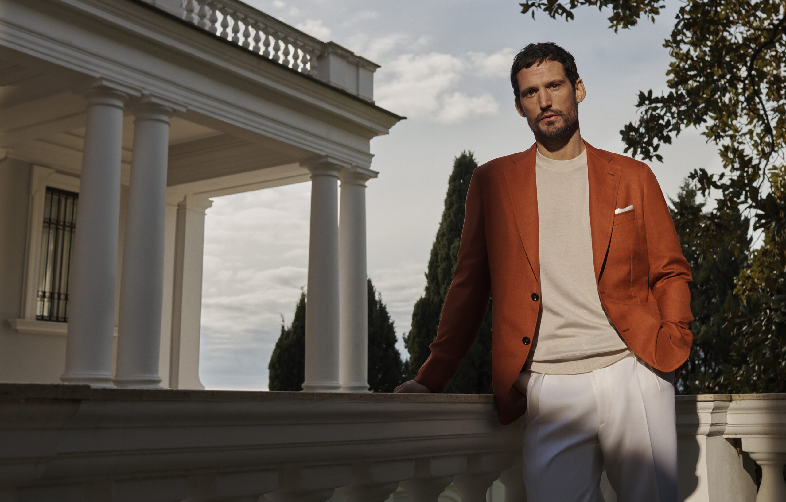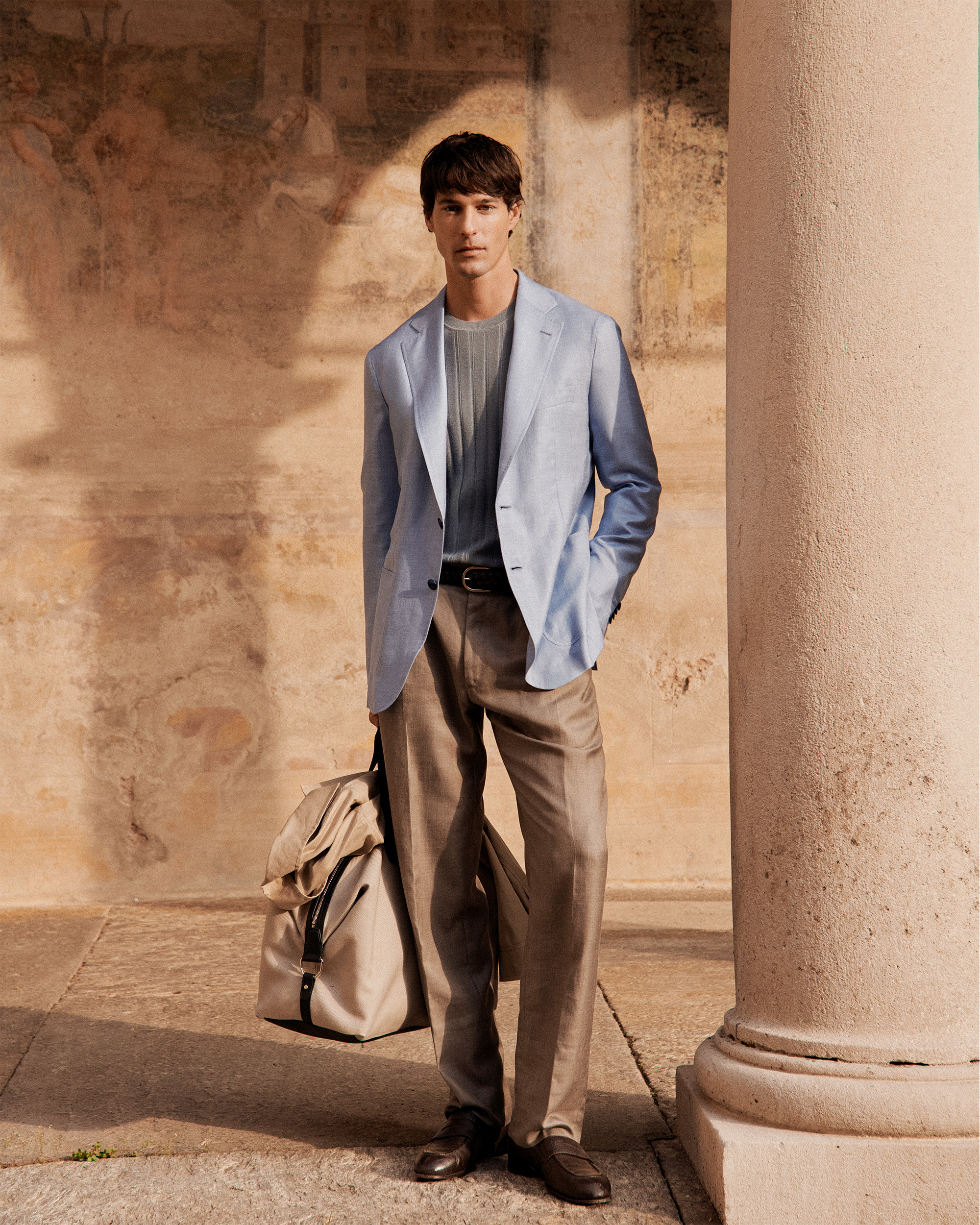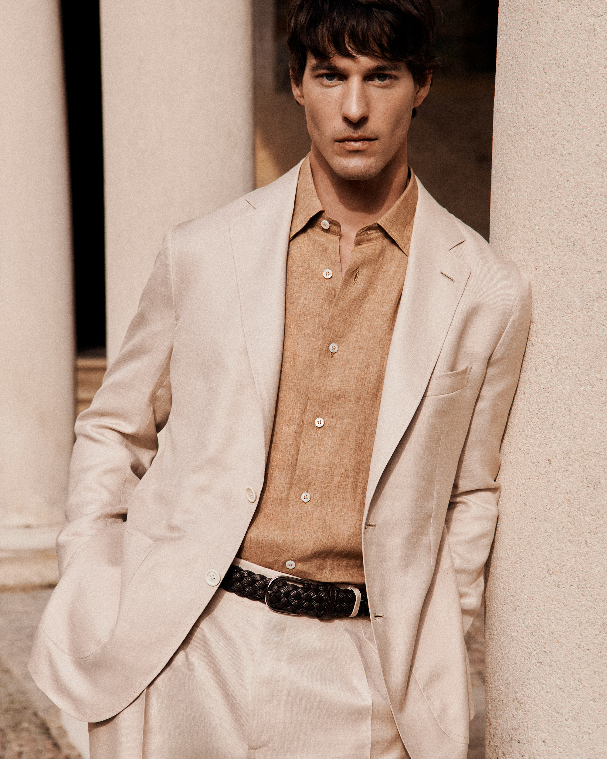 Gefertigt wird das Modell aus einer Auswahl edler Materialien, darunter auch das exklusive Zefiro-Gewebe – eine raffinierte Mischung aus Seide, Kaschmir und Leinen. Diese Kombination verleiht dem Blazer nicht nur eine aussergewöhnliche Leichtigkeit, sondern auch Tiefe und Struktur, die sich in jeder Bewegung subtil entfalten.