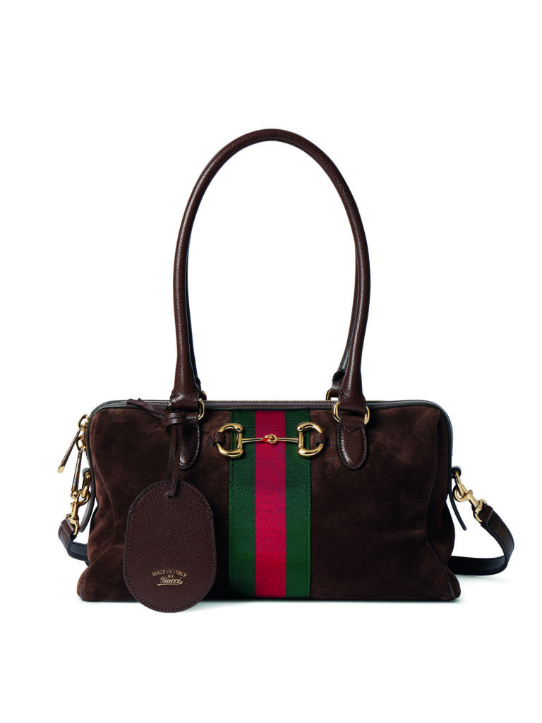 Ein verlängerter Griff und ein abnehmbarer Riemen werden hinzugefügt, um den Trägerkomfort und die Vielseitigkeit zu gewährleisten. Erhältlich in mittleren und großen Größen, verstärkt die charakteristische Horsebit-Hardware des Designs die Verbindung zu den historischen Codes des Hauses. Die Kollektion wird in einer Auswahl raffinierter Materialien und Töne präsentiert, darunter dunkelbraunes Wildleder, weiches schwarzes Leder sowie Sand- und dunkelbraunes GG Monogram-Leinwand.