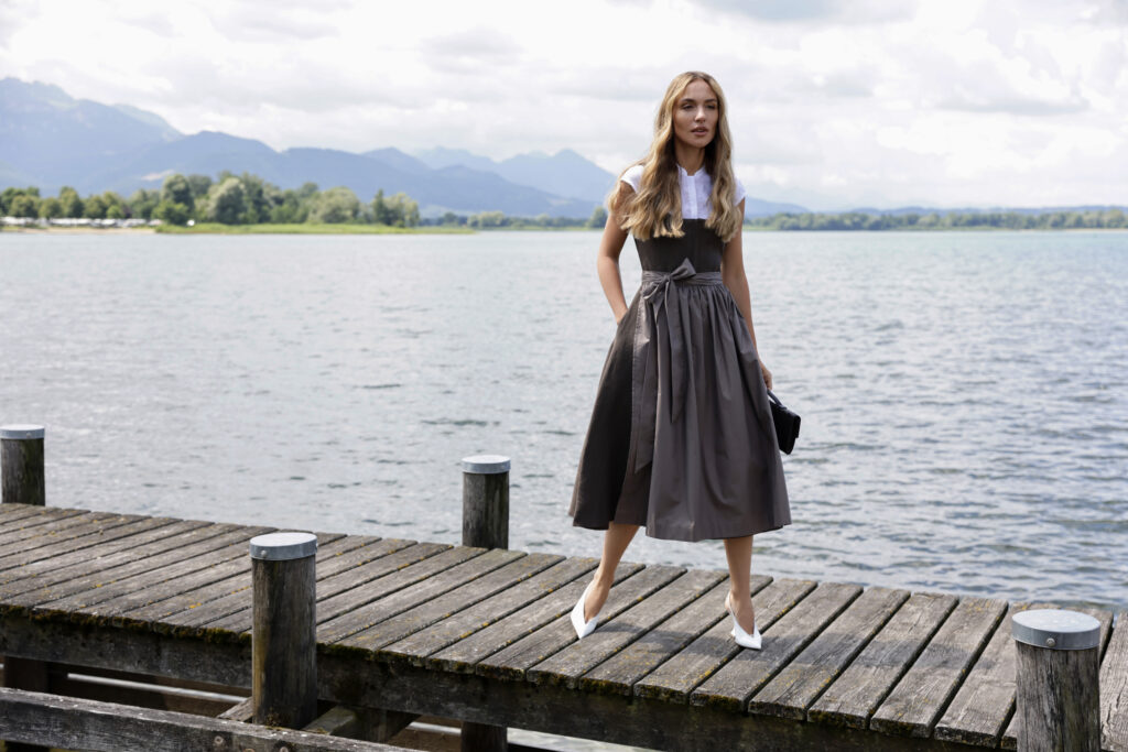 Die neue Viky x LODENFREY Kollektion umfasst ein elegantes Dirndl in drei harmonischen Farbvarianten: Braun & Hellgrau, Kastanie & Rosa sowie Braun & Taupe. Die Modelle aus hochwertigem Leinen vereinen zeitgemäßen Stil mit klassischem Charme.