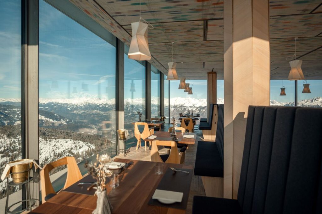 Hier scheinen die Alpen den Himmel zu küssen. Auf 2.235 Metern über dem Meeresspiegel liegt das «alpiNN – Food Space & Restaurant» am Gipfel des Kronplatzes in Südtirol. Seit Ende Januar 2025 wartet hier mit «The View» ein ganz besonderes Highlight für Genussreisende: acht exklusive Tische vor raumhohen Fenstern, die den Blick auf die verschneiten Dolomiten, das Ahrntal und die Weite der Alpenlandschaft freigeben. Eine Bühne für grosse Natur – und grosse Küche.