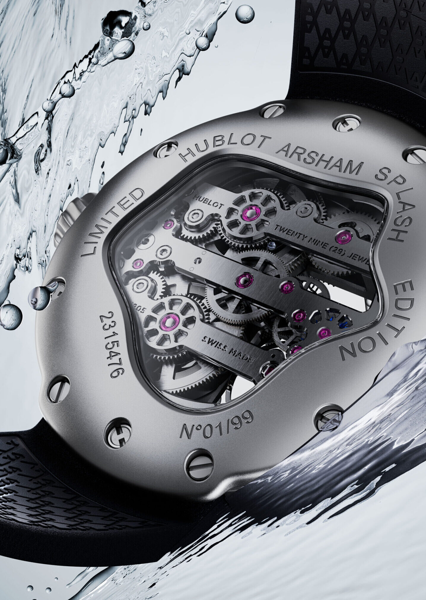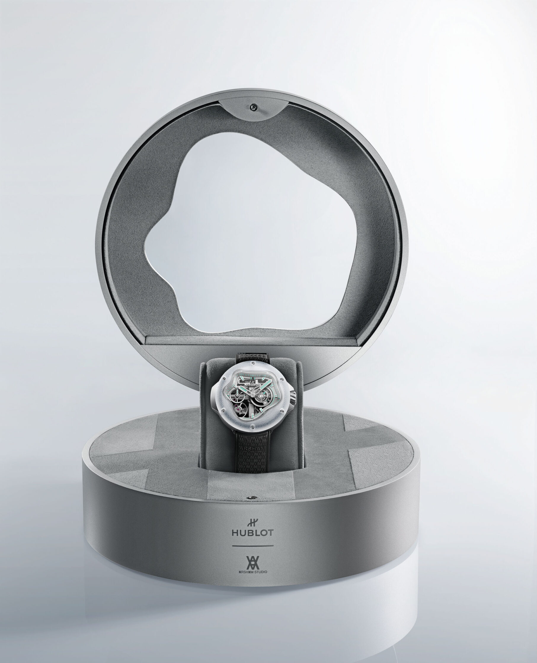 Während die MP-16 Arsham Droplet dieses Konzept mittels Form zum Leben erweckt hat, beschäftigt sich die neue MP-17 Meca-10 Arsham Splash Titanium Sapphire mit dem Eindruck, den Zeit hinterlässt. Mit ihren fliessenden Gehäuselinien, der spritzerförmigen Zifferblattöffnung und den transparenten Saphirkomponenten verkörpert sie Arshams künstlerische Vision und verbindet diese mit dem Kaliber Meca-10 von Hublot, um sowohl das Konzept als auch die Leistung in einem tragbaren Design zu realisieren.