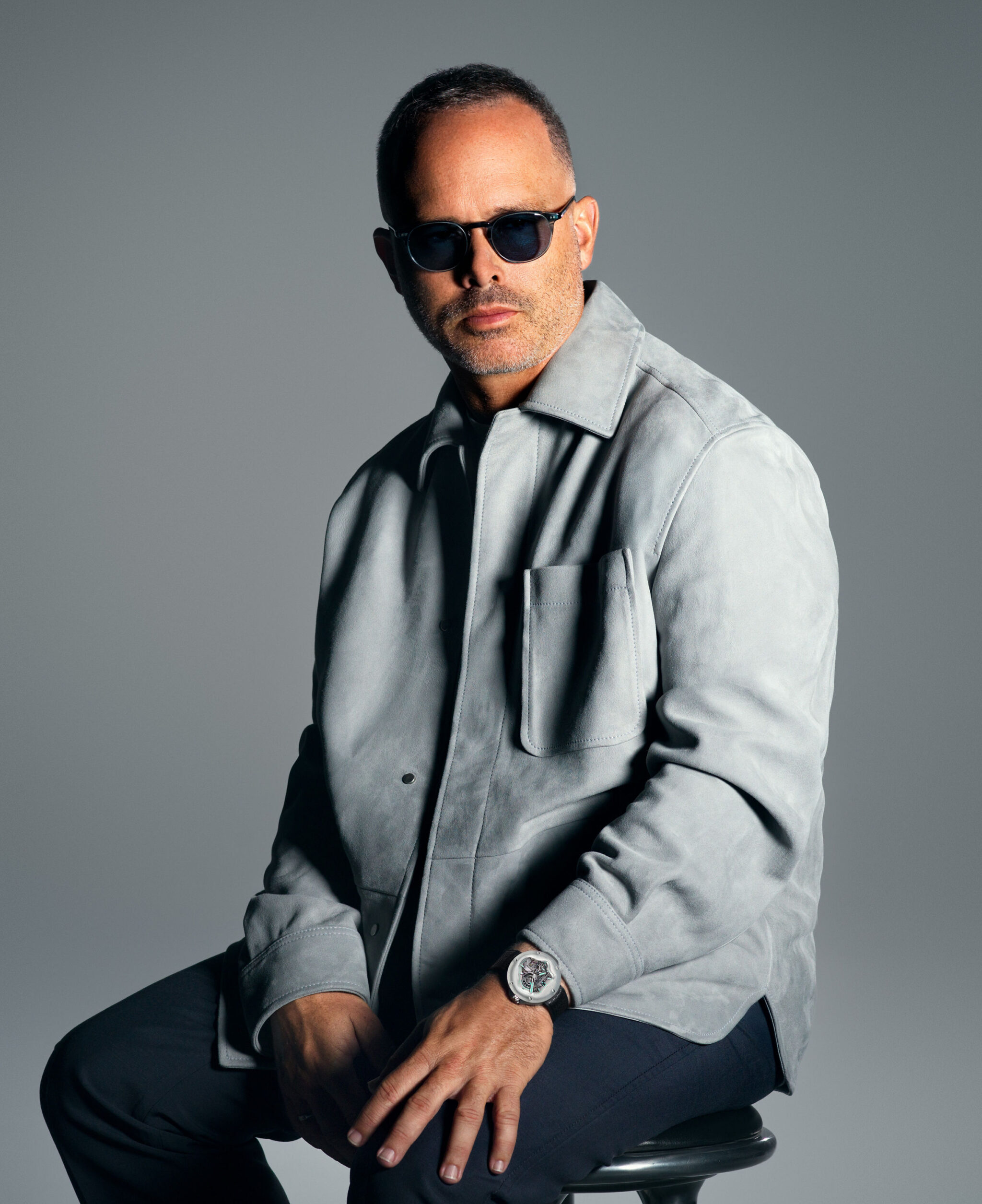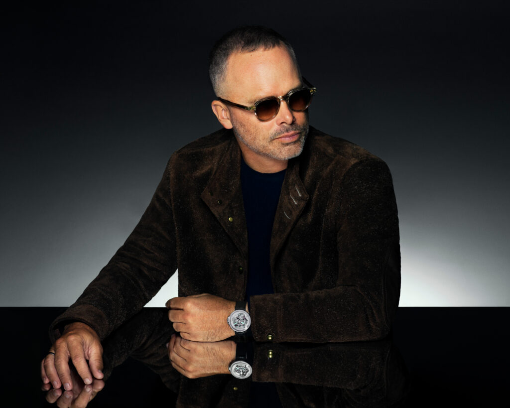 Hublot CEO Julien Tornare mit der neusten PRESTIGE Ausgabe trägt die MP-17 MECA-10 Arsham Splash Titanium Sapphire