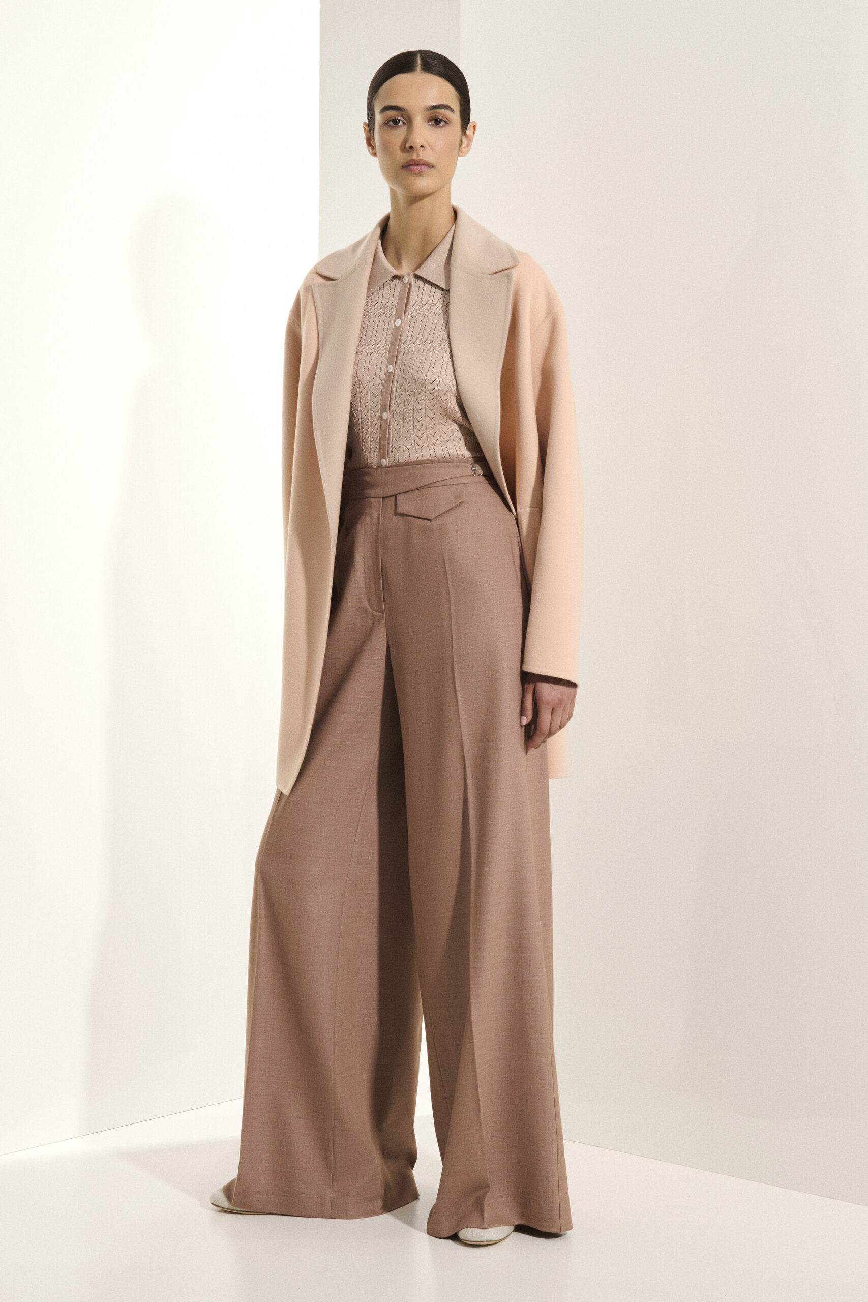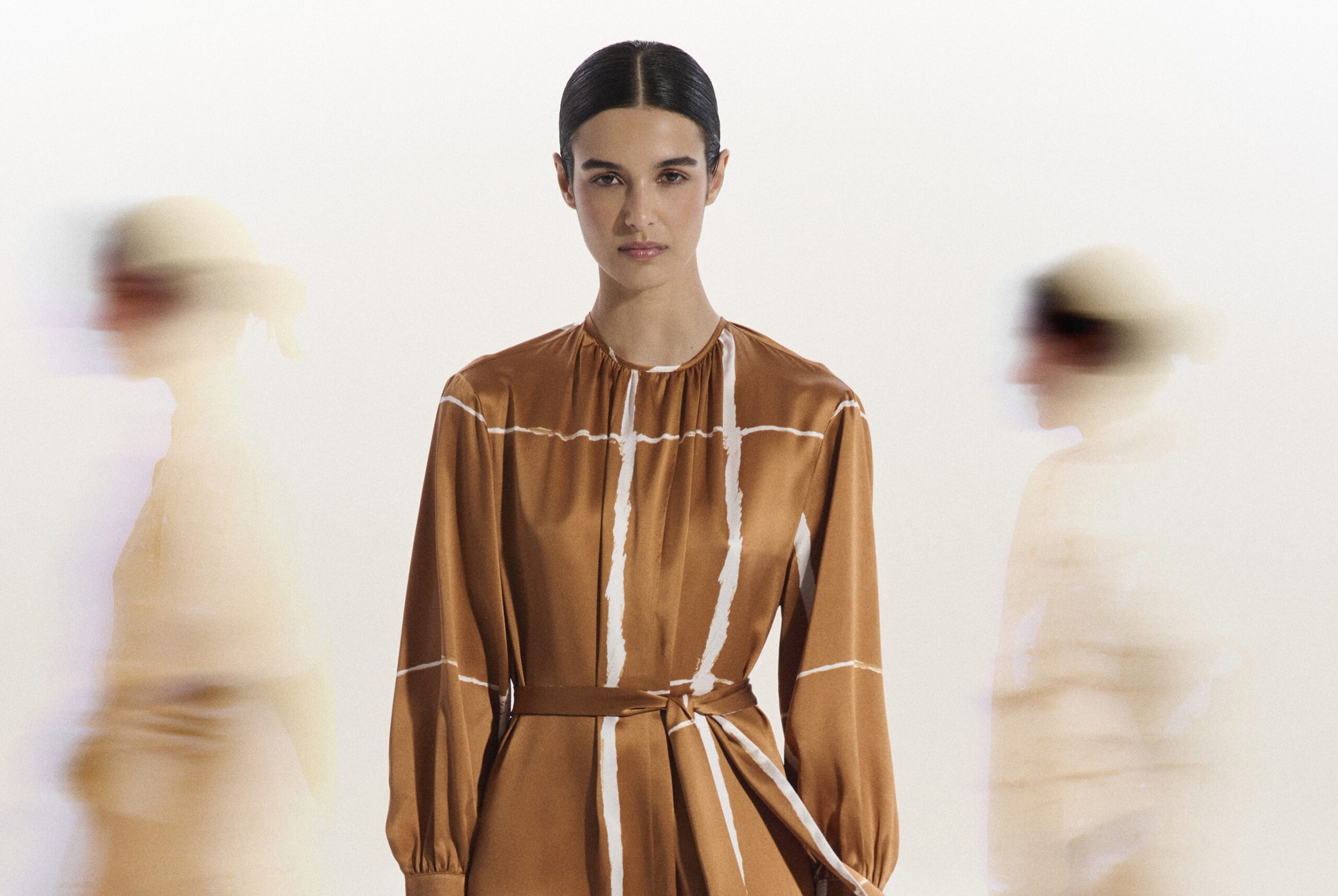 Die Kollektion versteht sich als Reise durch eine zeitlose Eleganz, geprägt von ikonischen Materialien und einer Designsprache, die Kunst, Kultur und kompromisslose Qualität vereint. Leichtes Kaschmir, Seide sowie raffinierte Mischungen aus Leinen und Baumwolle unterstreichen eine Weiblichkeit, die klassisch und mühelos wirkt. Weichheit, Glanz und Bewegung verschmelzen zu Silhouetten, die Dynamik zulassen, ohne an Balance zu verlieren. Sportliche Jacken, leichte Mäntel und präzise geschnittene Anzüge treffen auf fliessende Kleider – eine Garderobe, die sich nahtlos zwischen Business, Freizeit und privaten Momenten bewegt.