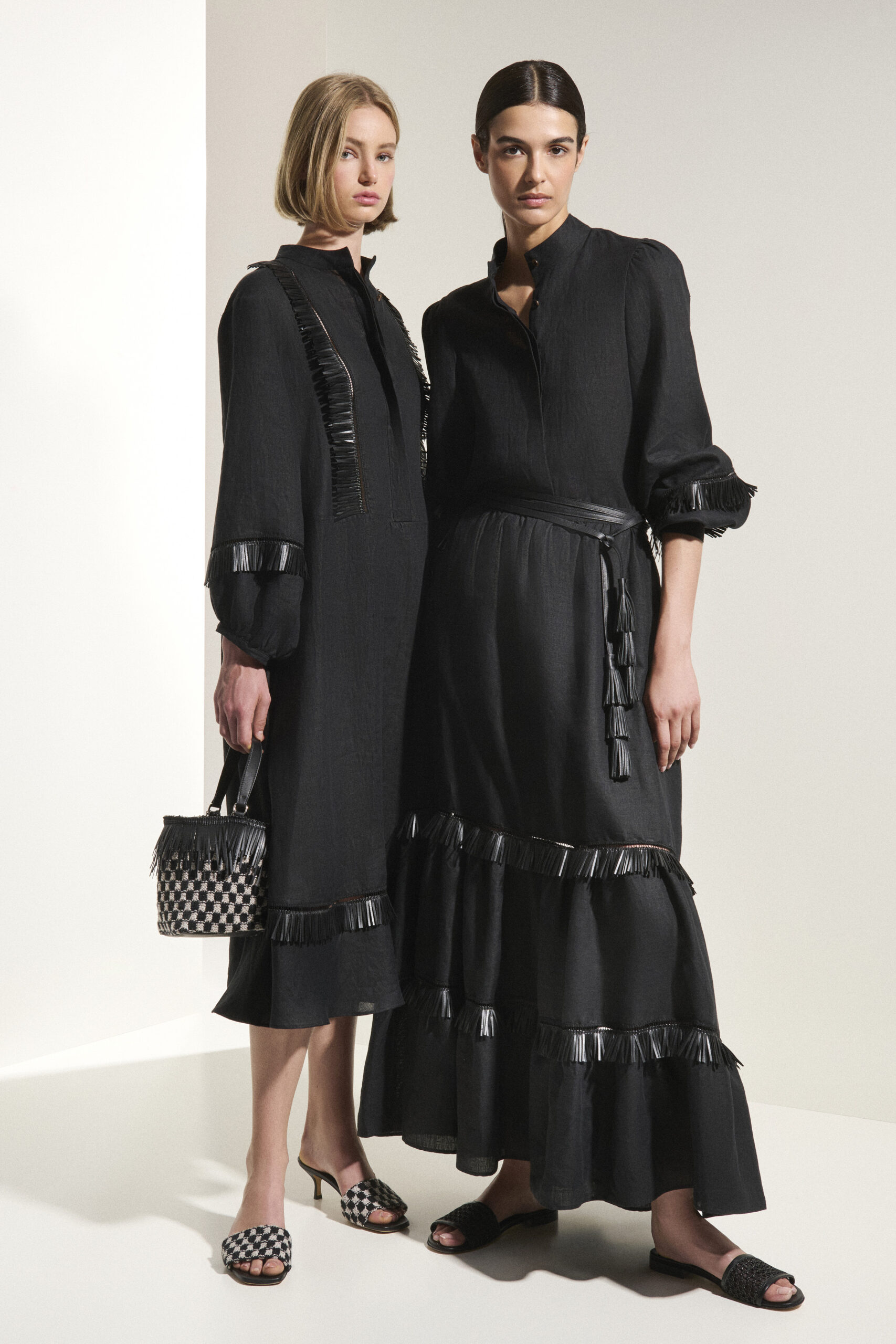 Besonderes Augenmerk liegt auf der Handwerkskunst. Neu in dieser Saison sind kunstvolle Stickereien, deren Stoffe in Indien nach traditionellen Techniken vorgeschnitten und anschliessend in Italien vollendet werden – ein Dialog zwischen Kulturen, der Textilien in Kunst verwandelt. Mikrofransen aus veganem Leder, Intarsien und Häkelarbeiten von italienischen Webstühlen ergänzen die Kollektion und unterstreichen den Anspruch an Präzision bis ins kleinste Detail. Leichte Nappaleder und ultrafeines Veloursleder sorgen für Vielseitigkeit, während lackierte Oberflächen ihre Geschmeidigkeit bewahren.