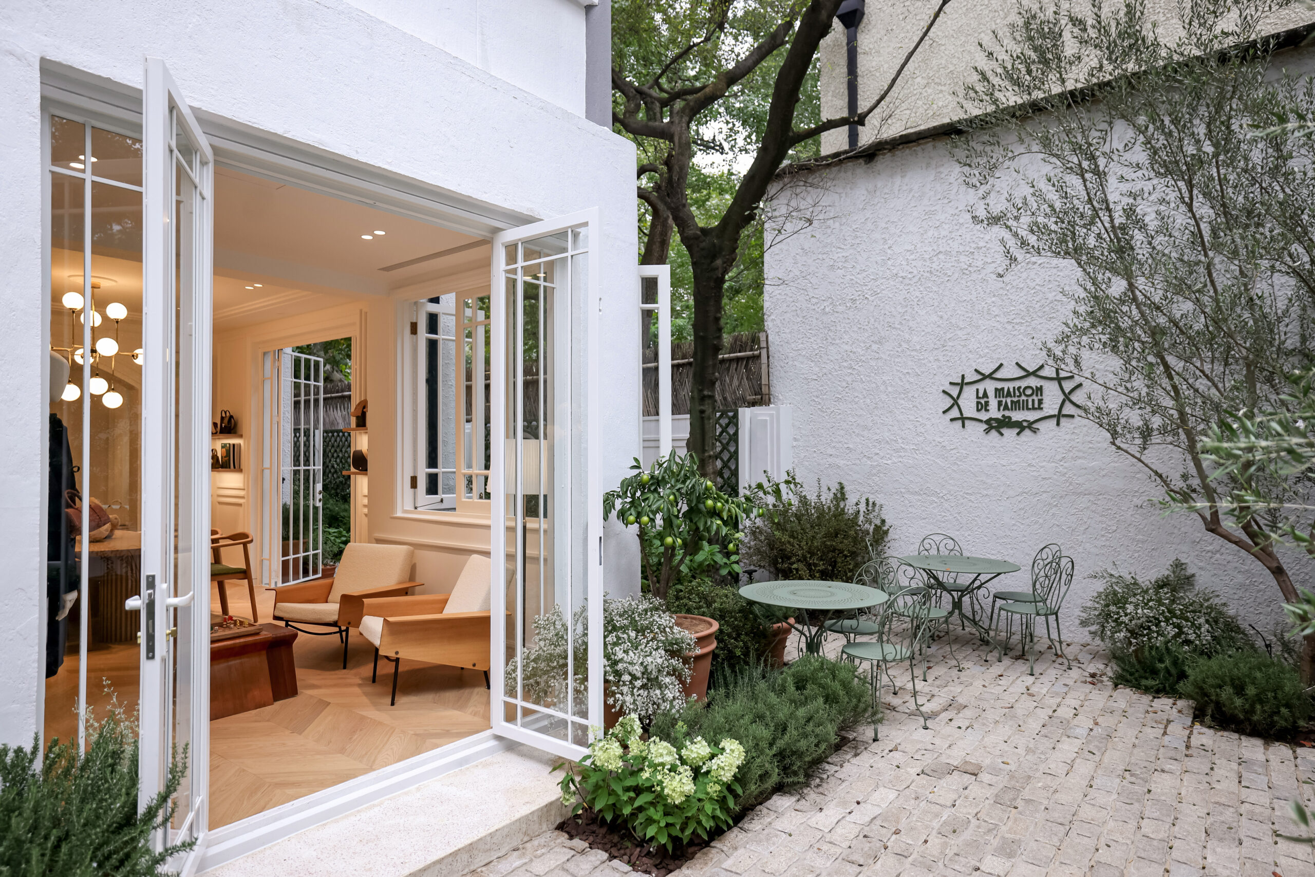 Hinter ihrer eleganten weißen Fassade strahlt die Maison de Famille Wärme und Geborgenheit aus, während der umliegende Garten den Charme eines Pariser Innenhofs mit kunstvoll gestalteten Gartenmöbeln, blühenden Hortensien, gepflegten Buchsbaumsträuchern und dem traditionellen französischen Münzwurfspiel „La Jeu de Grenouille“ vermittelt, das über Generationen hinweg gespielt wird.