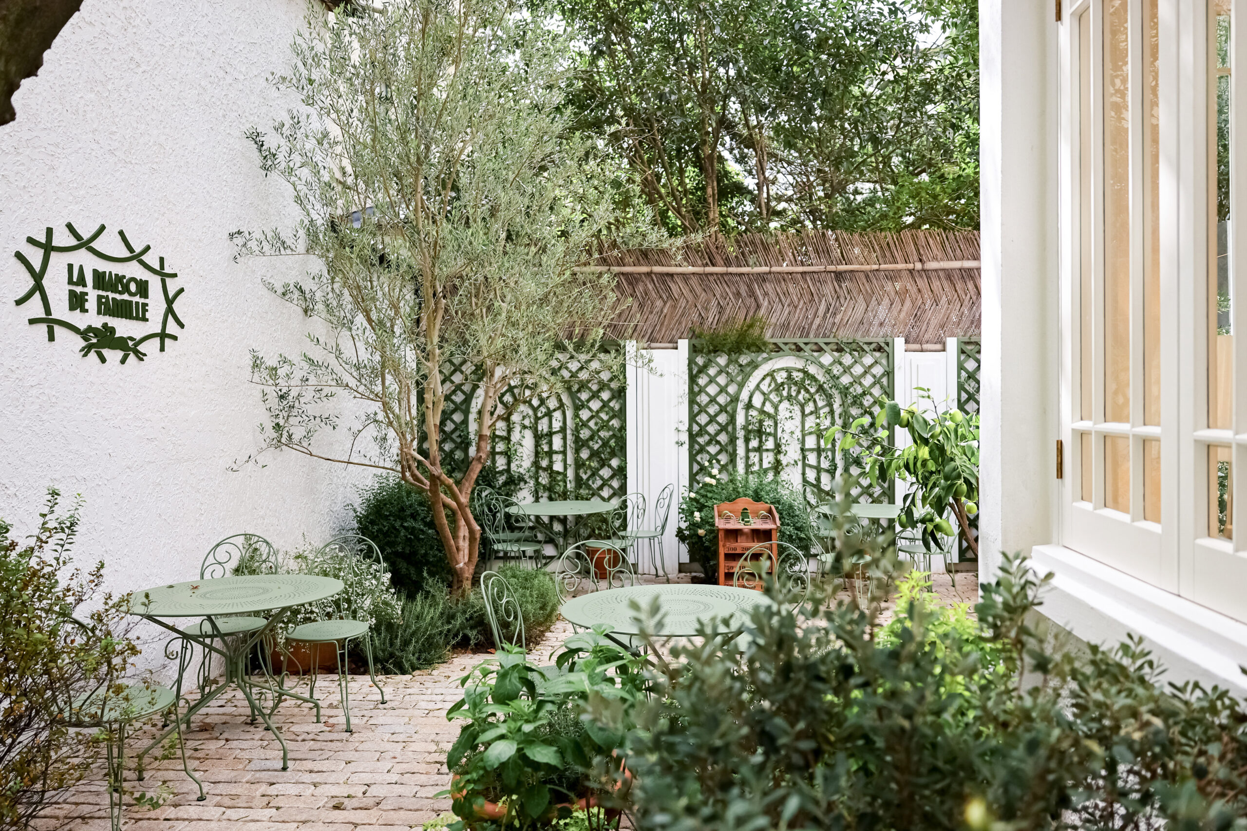 Hinter ihrer eleganten weißen Fassade strahlt die Maison de Famille Wärme und Geborgenheit aus, während der umliegende Garten den Charme eines Pariser Innenhofs mit kunstvoll gestalteten Gartenmöbeln, blühenden Hortensien, gepflegten Buchsbaumsträuchern und dem traditionellen französischen Münzwurfspiel „La Jeu de Grenouille“ vermittelt, das über Generationen hinweg gespielt wird.