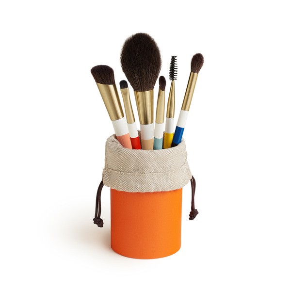 Die limitierte Edition Les Voyageurs umfasst fünf Pinceaux Hermès sowie einen sechsten, ganz neuen Pinsel – Le multi-teint (der Multifunktionspinsel), der speziell für die Edition kreiert wurde – im Taschenformat. Dieses erste Reiseset, das uns überallhin begleiten soll, ist Teil der Kollektion Les Pinceaux Hermès.