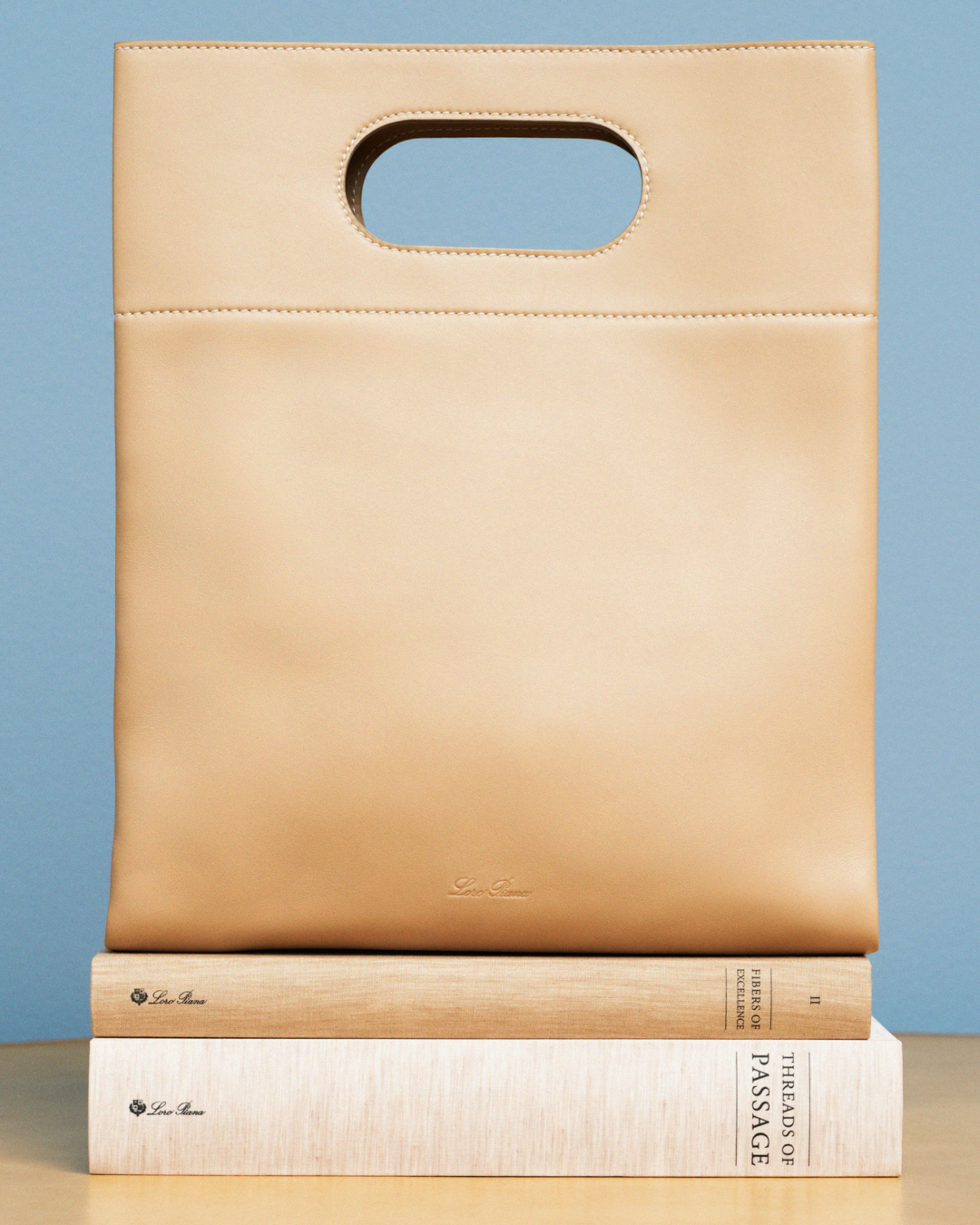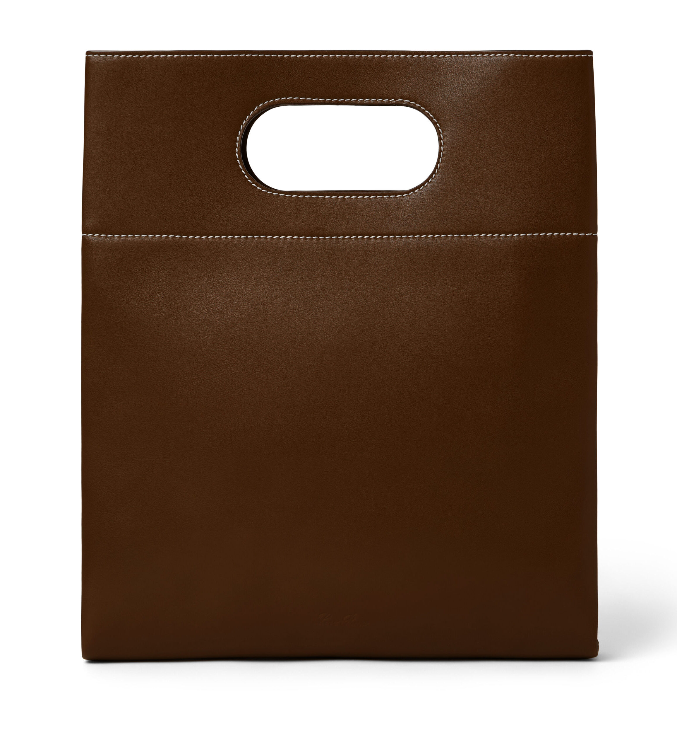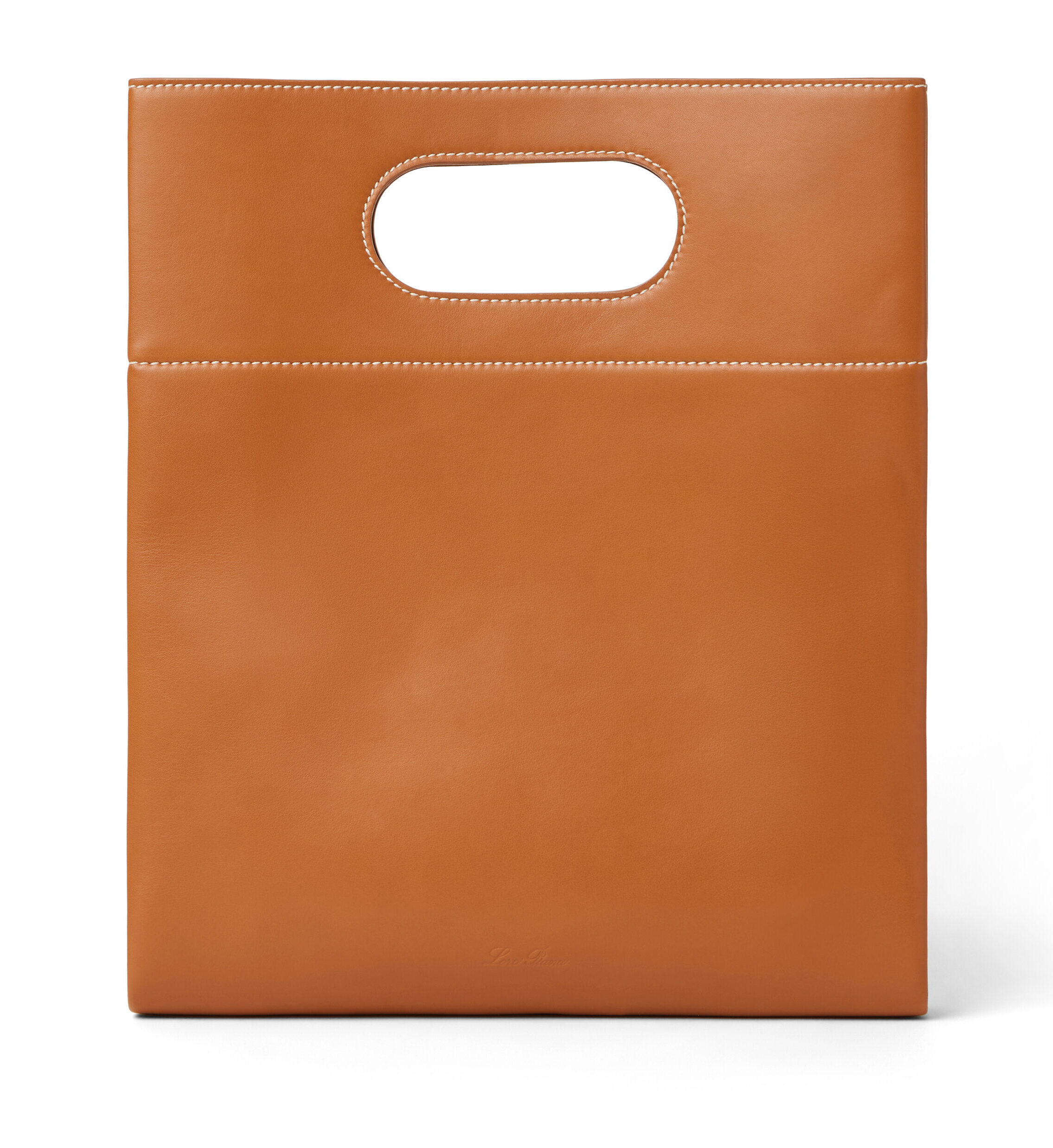 In Italien wird sie aus einem einzigen Stück geschmeidigem, natürlich glattem Kalbsleder ganz ohne Metallelemente von Hand gefertigt. Das Ergebnis ist ein nahtloses, puristisches Design mit einer aussergewöhnlichen Haptik. Der Griff ist auf das Wesentliche reduziert und wird präzise aus dem Leder herausgeschnitten. Eine dezent eingeprägte Loro-Piana-Signatur rundet das Erscheinungsbild ab.
