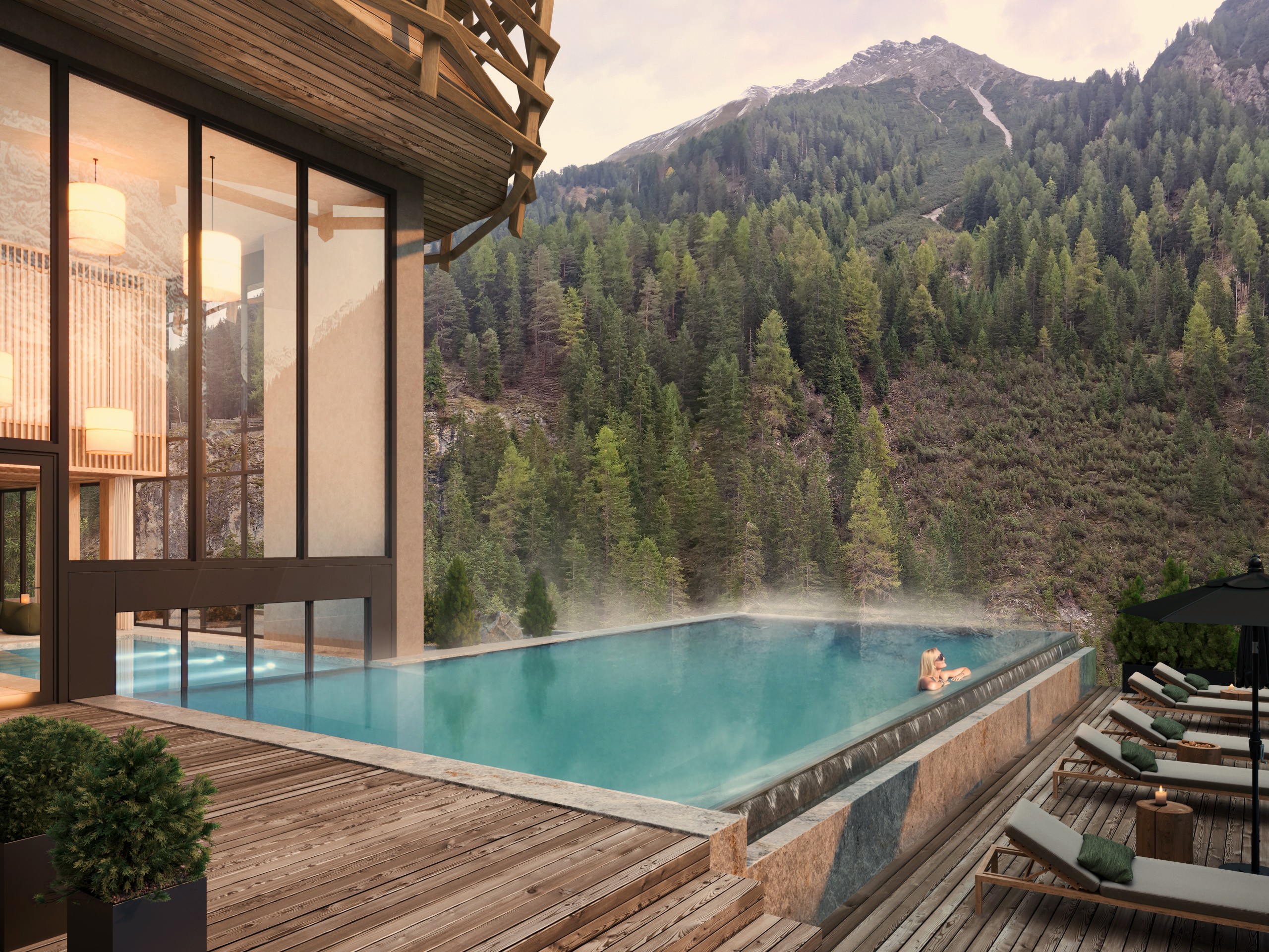 Im „Nest“ ist auch viel Platz für Zweisamkeit entstanden. Im Adults-only-Spa (ab 16 Jahren) können sich Paare bewusst zurückziehen und, umgeben von hohen Gipfeln, die Stille der Berge genießen. Architektonisches Highlight ist der ganzjährig beheizte Infinity-Pool: Wasser, Himmel und Fels verschmelzen zu einer offenen Fläche über dem rauschenden Trafoi-Canyon. Schwimmen und schweben inmitten der Natur war noch nie schöner. Fünf Saunen – eine Bio-Sauna, ein Dampfbad, eine Infrarot-Sauna, eine Fass-Sauna und eine mitten in der Natur liegende Panorama-Sauna – stehen Gästen je nach Wunsch zur Verfügung. Der großzügige Relax-Bereich „Fire and Ice“ verbindet Feuerstelle und Schneedusche und macht Gegensätze von Wärme und Kälte körperlich spürbar. Wer es sprudelnd mag, findet im Outdoor-Whirlpool einen weiteren Ort der Entspannung. Wöchentliche Yoga, Pilates-Angebote, Atmungs-Wanderungen oder Meditation beim Sound Healing greifen die Atmosphäre der Berge auf und machen sie auf entspannende Weise erlebbar.