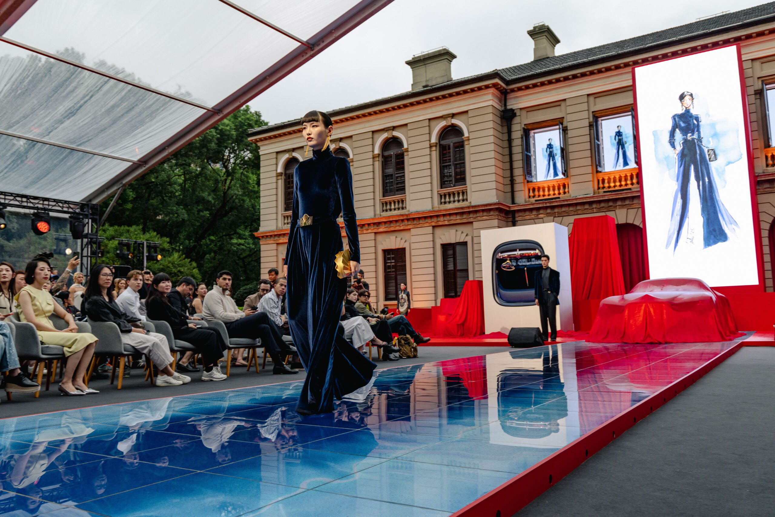 Zusammen mit dem Showcar präsentiert Mercedes-Benz eine Capsule Collection, die aus sechs sorgfältig kreierten Outfits für Damen und Herren besteht. Mit dunkelblauen Nuancen und silbergoldenen Akzenten spiegeln die Outfits nicht nur das luxuriöse Farbschema des Vision Iconic wider, sondern spielen auch mit den grafischen Elementen des Interieurs des Showcars. Auf diese Weise fängt die Kollektion die Essenz des Art Deco Stils ein, indem sie den Luxus der 1920er und 1930er Jahre mit feinster Handwerkskunst und exquisiten Materialien verbindet. Jedes Stück zelebriert die Liebe zum Detail und die Verwendung von charakteririschen Stoffen, die diese ikonische Epoche geprägt haben. Die Capsule Collection zollt zudem der Shanghai Fashion Week Tribut, die zeitgleich mit der Weltpremiere des Vision Iconic stattfindet.