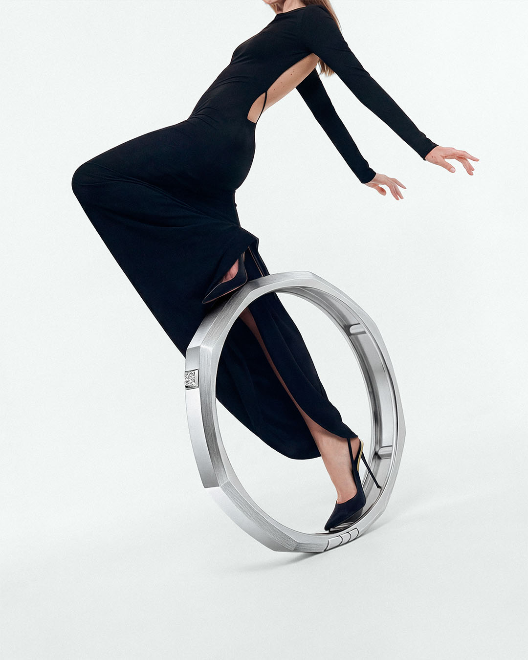 Im Spannungsfeld von Kreis und Quadrat entfaltet sich ein Paradox: kraftvoll und präzise, minimalistisch und doch komplex. Eine subtile Pyramidenform – asymmetrisch gemeistert – verweist auf die ikonische Handschrift des Hauses.