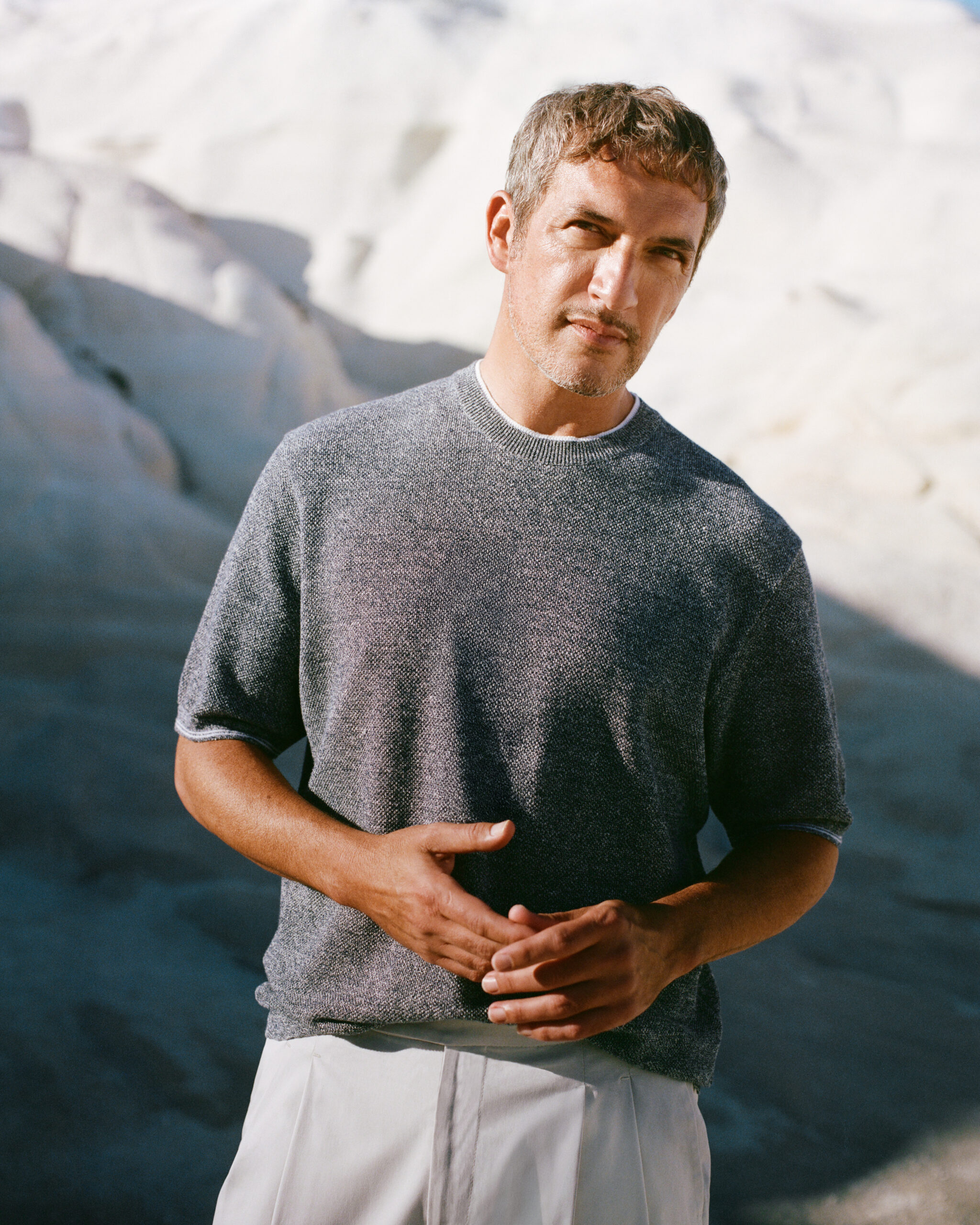 In der Saison Frühjahr/Sommer 2026 avanciert insbesondere die Knitwear – für Damen wie Herren – zum Herzstück der Kollektion. Neue Faserkombinationen erzeugen Garne mit exklusiven Nuancen und vielschichtigen Texturen. Leinen, Seide, Cashmere und Baumwolle verschmelzen zu edlen Blends, die Leichtigkeit mit Struktur verbinden.