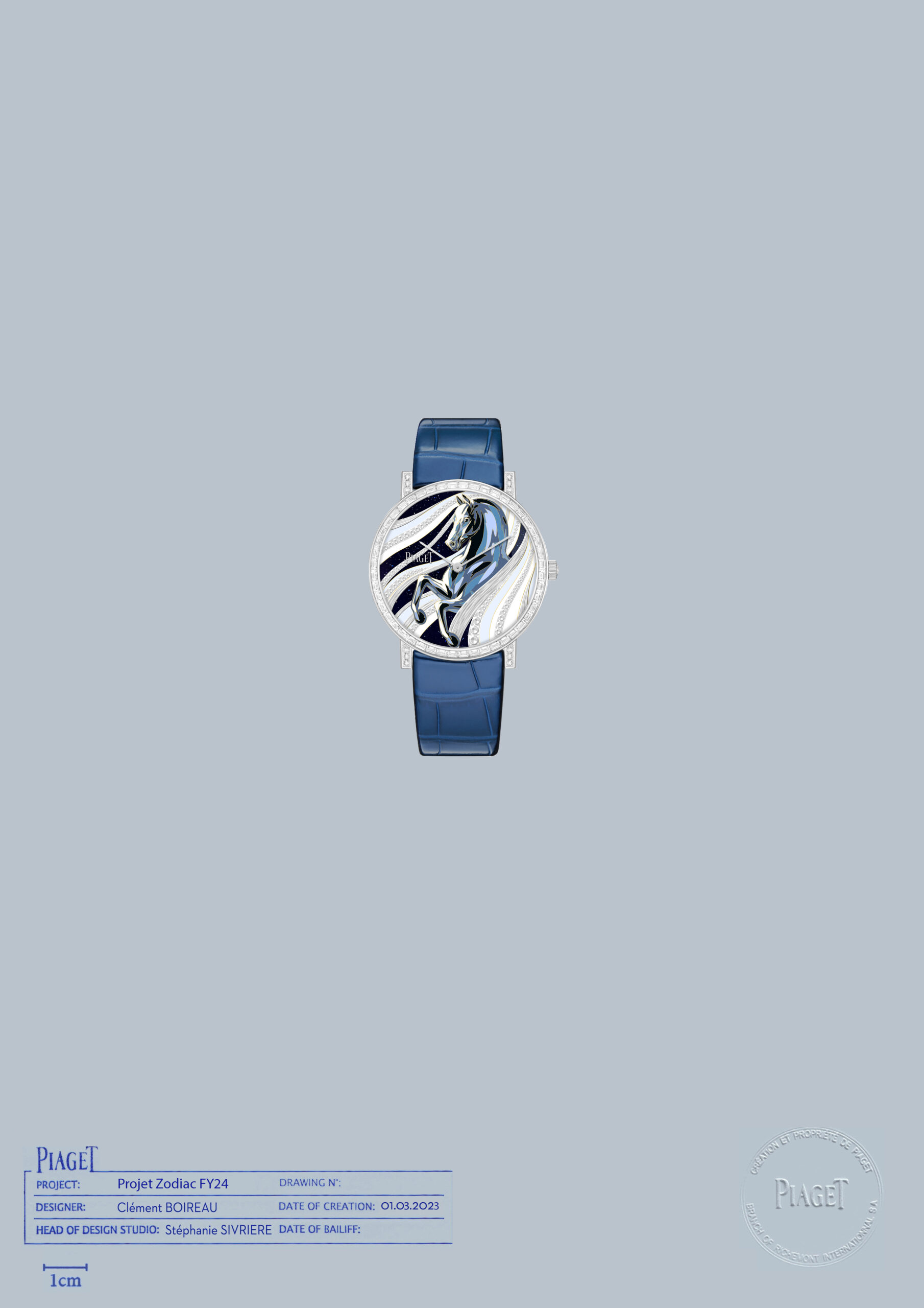 Das Herz der Altiplano Zodiac Horse Edition schlägt in ihrem Zifferblatt und zieht alle Blicke auf sich. Der Weissgoldboden wird zunächst in den Piaget-Werkstätten von Hand graviert. Unter dem Stichel wird der Faltenwurf in Relief enthüllt, der als Hintergrund für das Pferd dienen wird. Das Zifferblatt ist somit unterteilt, um die Emaillierung nach der gleichnamigen Technik aufzunehmen.