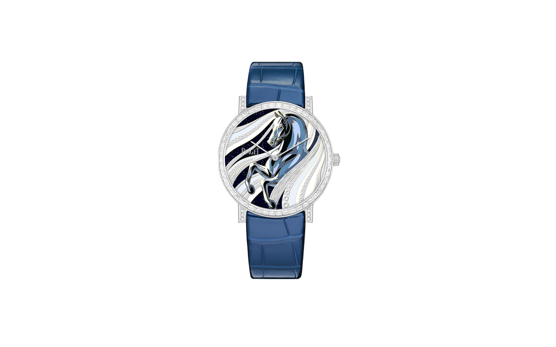 Das Herz der Altiplano Zodiac Horse Edition schlägt in ihrem Zifferblatt und zieht alle Blicke auf sich. Der Weissgoldboden wird zunächst in den Piaget-Werkstätten von Hand graviert. Unter dem Stichel wird der Faltenwurf in Relief enthüllt, der als Hintergrund für das Pferd dienen wird. Das Zifferblatt ist somit unterteilt, um die Emaillierung nach der gleichnamigen Technik aufzunehmen.