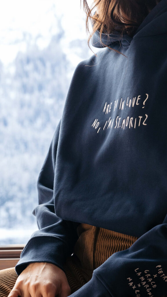 Die Capsule Collection Pietro Terzini x GRACE x Max&Co. verbindet zeitgenössische Kunst mit Mode und übersetzt Terzinis unverwechselbare Sprache in tragbare Statements. Die limitierte Kollektion umfasst dunkelblaue Hoodies, ein graues Sweatshirt sowie Caps mit dem ikonischen Schriftzug „ARE YOU IN LOVE? NO, I’M IN ST. MORITZ“, erhältlich in Schwarz, Braun und Dunkelgrün.