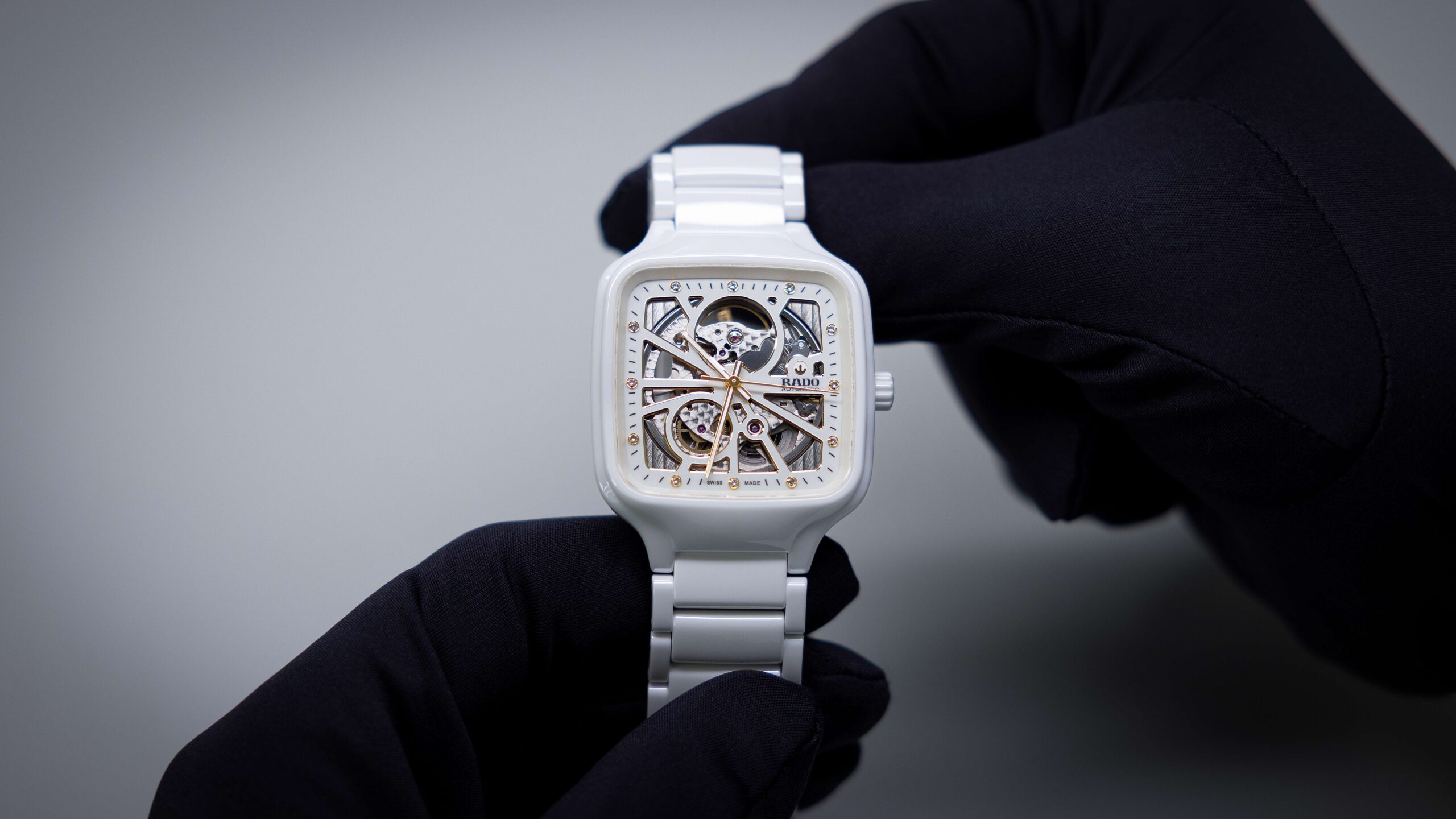 Die von Rado 1986 nach umfangreicher Forschung und Entwicklung eingeführte Hightech-Keramik kann nur unter strengsten Bedingungen hergestellt werden. Der Prozess beginnt mit extrem reinen und fein kalibrierten Zirkonoxid-Mineralpulvern, die mit einem speziell entwickelten Kunststoffträger vermischt und unter einem Druck von rund 1.000 bar in Präzisionsformen eingespritzt werden. Die Formen werden gebrannt, anschließend abgekühlt, wobei sich der Kunststoffträger chemisch auflöst. Die Keramikformen werden dann erneut erhitzt, diesmal auf 1.450 °C. Durch diesen präzise gesteuerten Sinterprozess verschmelzen die Pulverpartikel miteinander, wodurch eine Dichte und Härte entsteht, die herkömmliche Keramik weit übertrifft. Das Ergebnis ist ein Material mit einer Vickershärte von 1.250, das sich mit Diamantwerkzeugen bearbeiten und veredeln lässt und somit bereit für die Montage in einer Rado-Uhr ist.