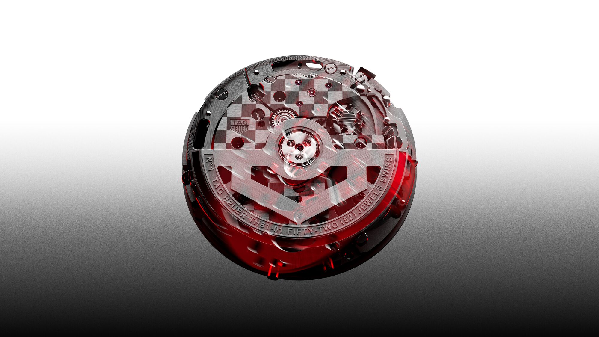 Der Kaliber TH81-01 besteht aus mehr als 350 Komponenten und wird vollständig von Hand gefertigt und verwendet mehr als 10 verschiedene Techniken, wie schwarze Polierung der Schrauben oder Handabschrägung der verschiedenen Brücken. All diese werden gekrönt von TAG Heuers charakteristischer Finishing-Technik, dem karierten Flaggenmuster, das von Hand ein Quadrat nach dem anderen graviert wird und zum Markenzeichen der größten Bewegungen des Maison geworden ist.