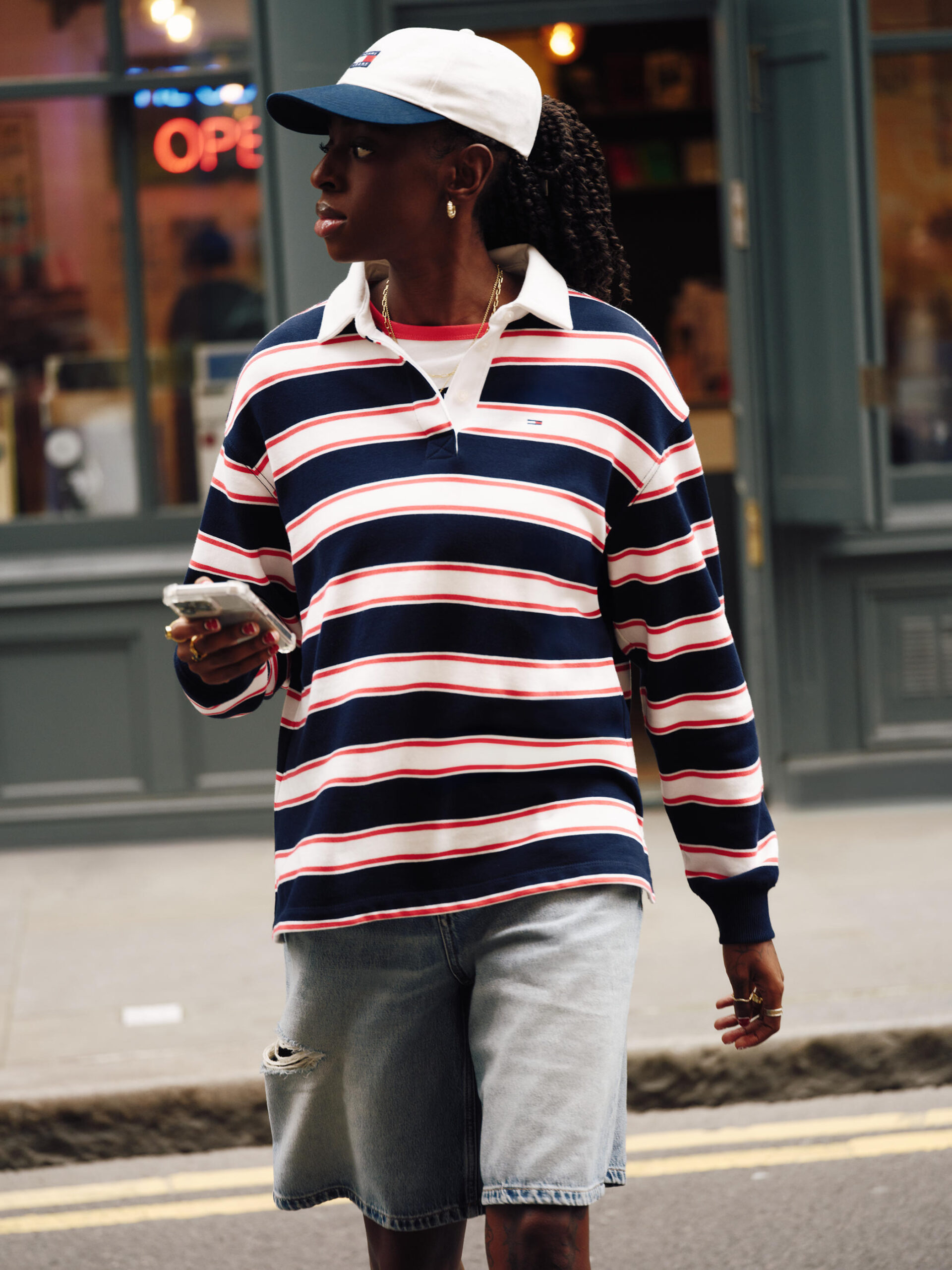 „Spring 2026 bedeutet, den Rhythmus der Stadt sprechen zu lassen – und Londons Energie verleiht TOMMY JEANS eine neue Schärfe“, so Tommy Hilfiger. Selbstbewusstsein, Individualität und ein furchtloser Umgang mit Identität stehen im Zentrum der Kollektion. Die Protagonist:innen der Kampagne „own the shot, the city, the moment“ – sie kontrollieren Bild, Raum und Narrativ.