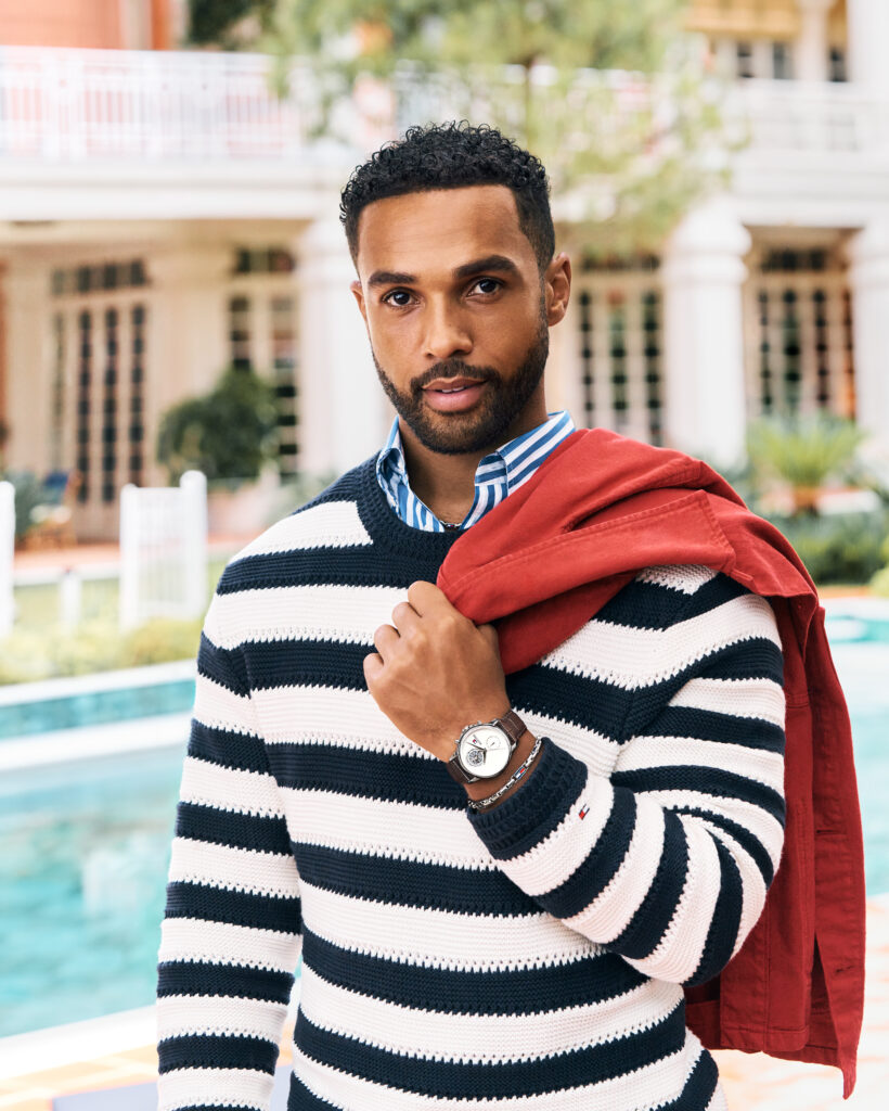 „In Tommys Welt einzutauchen fühlt sich immer so natürlich an; es gibt eine Leichtigkeit und Selbstvertrauen in der Atmosphäre, die er schafft“, sagte Lucien Laviscount. „Dieses gleiche Gefühl inspiriert, wie ich mich mit Uhren und Schmuck style, denn das sind die Details, die die Stimmung setzen. Es sind diese kleinen Berührungen, die dich bereit fühlen lassen für das, was als Nächstes kommt.“
