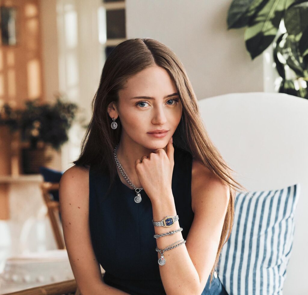 Damenschmuck erweitert sich um zwei unverwechselbare Produkte, die nautische Eleganz neu interpretieren. „Nautical Charms“ betonen Anker- und Seildetails mit vergoldeten Oberflächen und charakteristischen Flaggendetails auf Halsketten, Armbändern und Ohrringen. Die „Marina“-Kollektion kombiniert Ketten aus Mariner-Link-Ketten mit ikonischen Emaillakzenten und verbindet zeitloses Design mit einem frischen, modernen Geist.