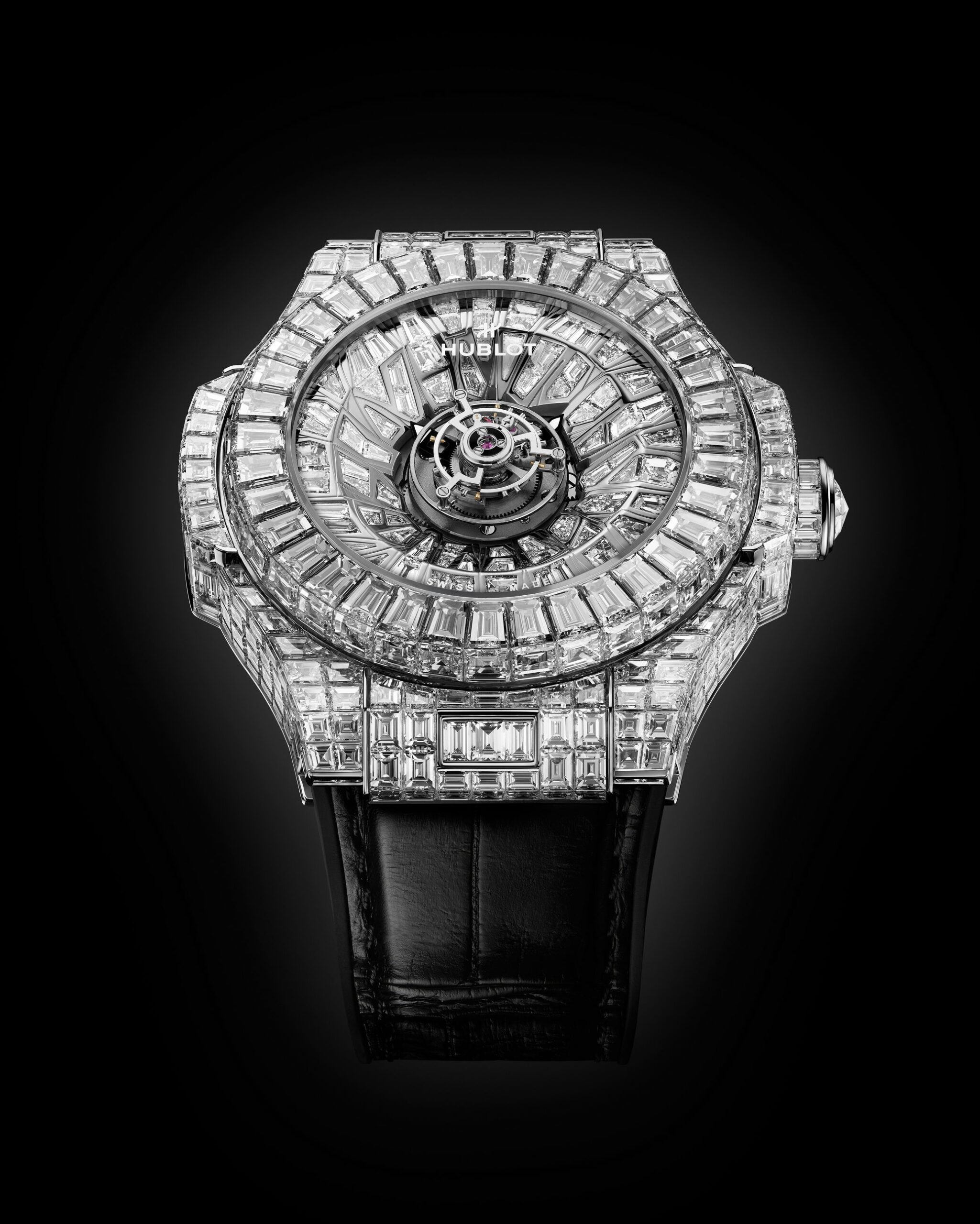 Hublot, erweitert mit der Big Bang Impact One Million erneut die Grenzen der Haute Horlogerie und Haute Joaillerie. Fünfhundert Diamanten (~44,6 Karat), in unkonventionellen Formen geschliffen, vollführen einen dynamischen Wirbel rund um das zentrale fliegende Tourbillon und symbolisieren damit die Anziehung von Energie und einen unverrückbaren Fokus im Herzen einer der ikonischsten Komplikationen der Uhrmacherkunst.