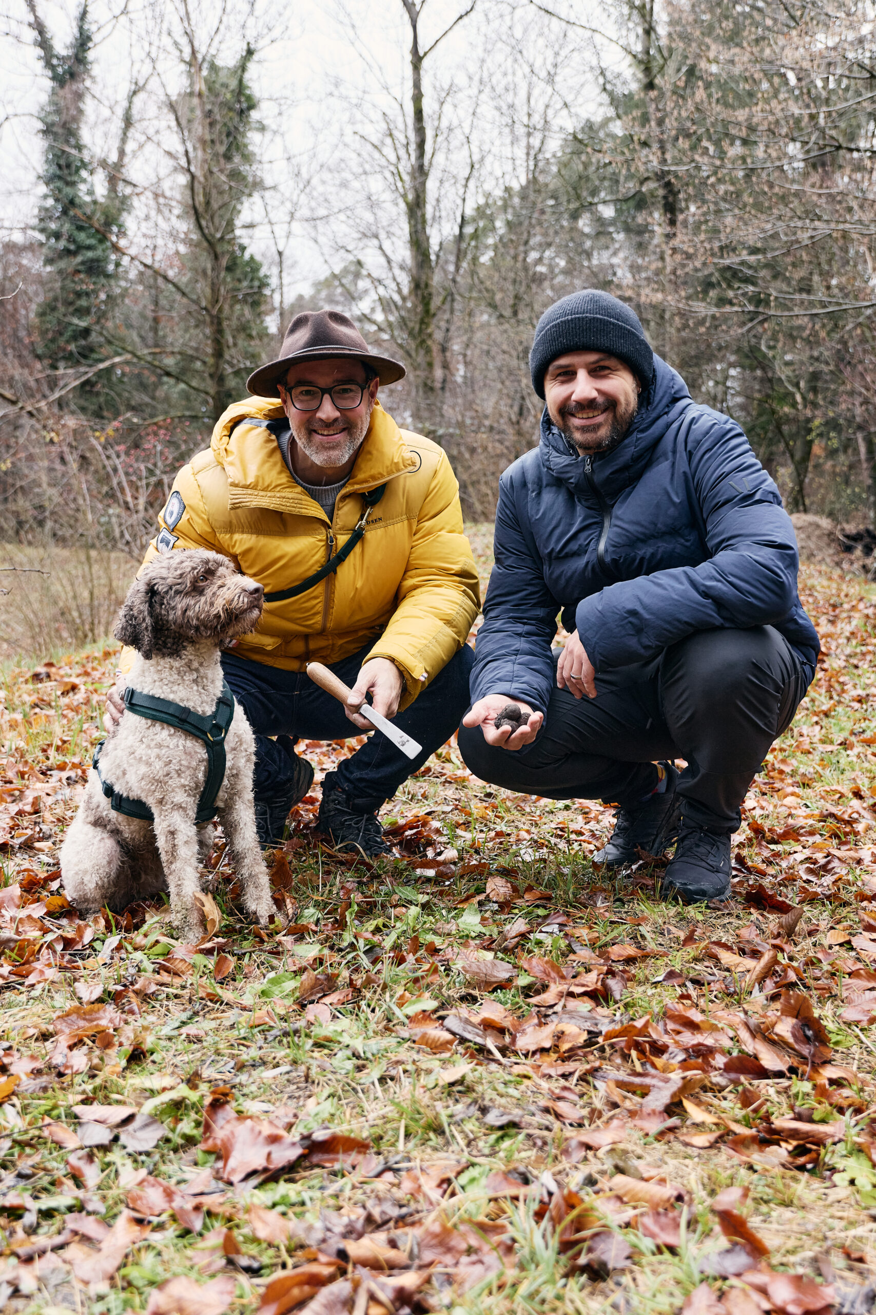 Unseren ersten Stopp legten wir in Fläsch ein. Hier wartete ein ganz besonderer Programmpunkt auf uns: Gemeinsam mit Salar Bahrampoori und seiner bezaubernden Hündin Lisl begaben wir uns auf Trüffelsuche im Wald – und dies mit Erfolg. Die gefundenen Trüffel sollten unter anderem später im Rahmen eines exklusiven sechsgängigen Gourmetdinners verköstigt werden.