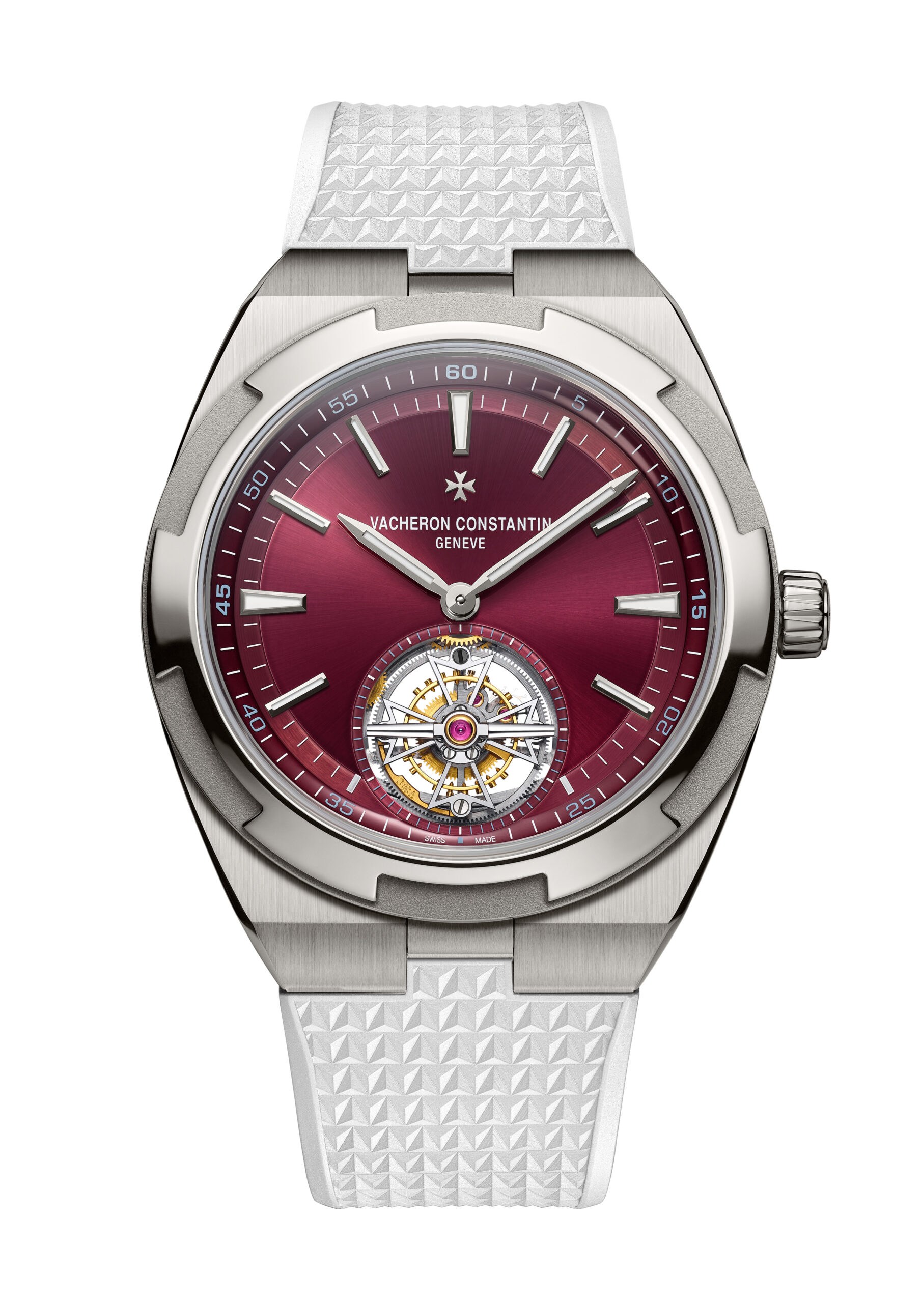 Vacheron Constantin erweitert seine Overseas-Kollektion um ein Tourbillon-Modell aus Titan mit tiefrotem Zifferblatt. Titan, ein Material, das perfekt zum sportlich-eleganten Charakter der Kollektion passt, besticht durch Robustheit und Leichtigkeit. Zertifiziert mit der Genfer Punze und ausgestattet mit dem extra-flachen Kaliber 2160, das nur 5,65 mm hoch ist, verfügt die Uhr über einen Tourbillon- Regulator und sitzt angenehm am Handgelenk.